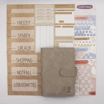 Starte effektiv mit unserer Umschlagmethode durch unser Starter Set! Im Set enthalten ist ein Personal Binder, 8 Zipperumschläge, die nötige Grundausstattung und 6 Spar-Challenges. Alles, was du brauchst, um deine Finanzen sofort besser zu managen und Sparziele spielerisch zu erreichen. Ideal für Budget-Einsteiger!
