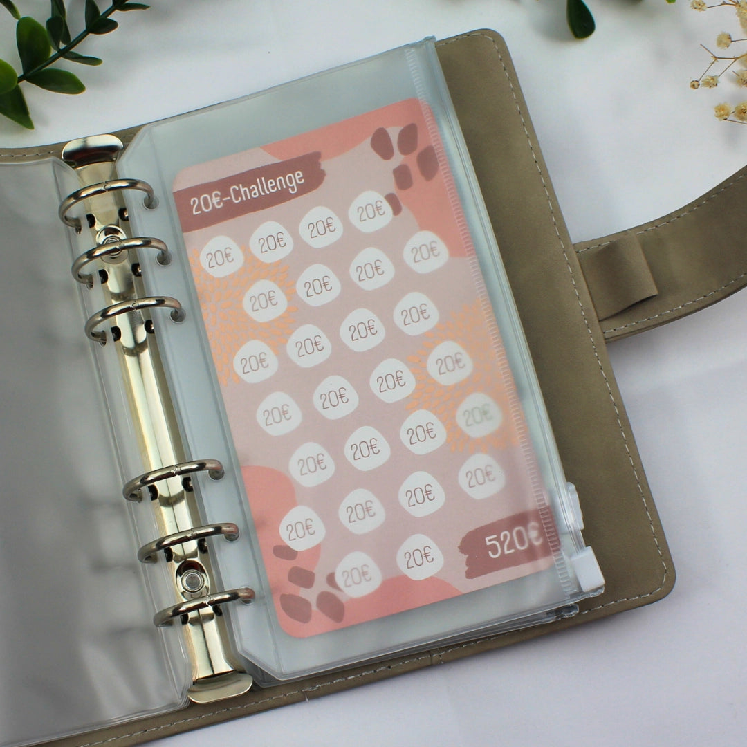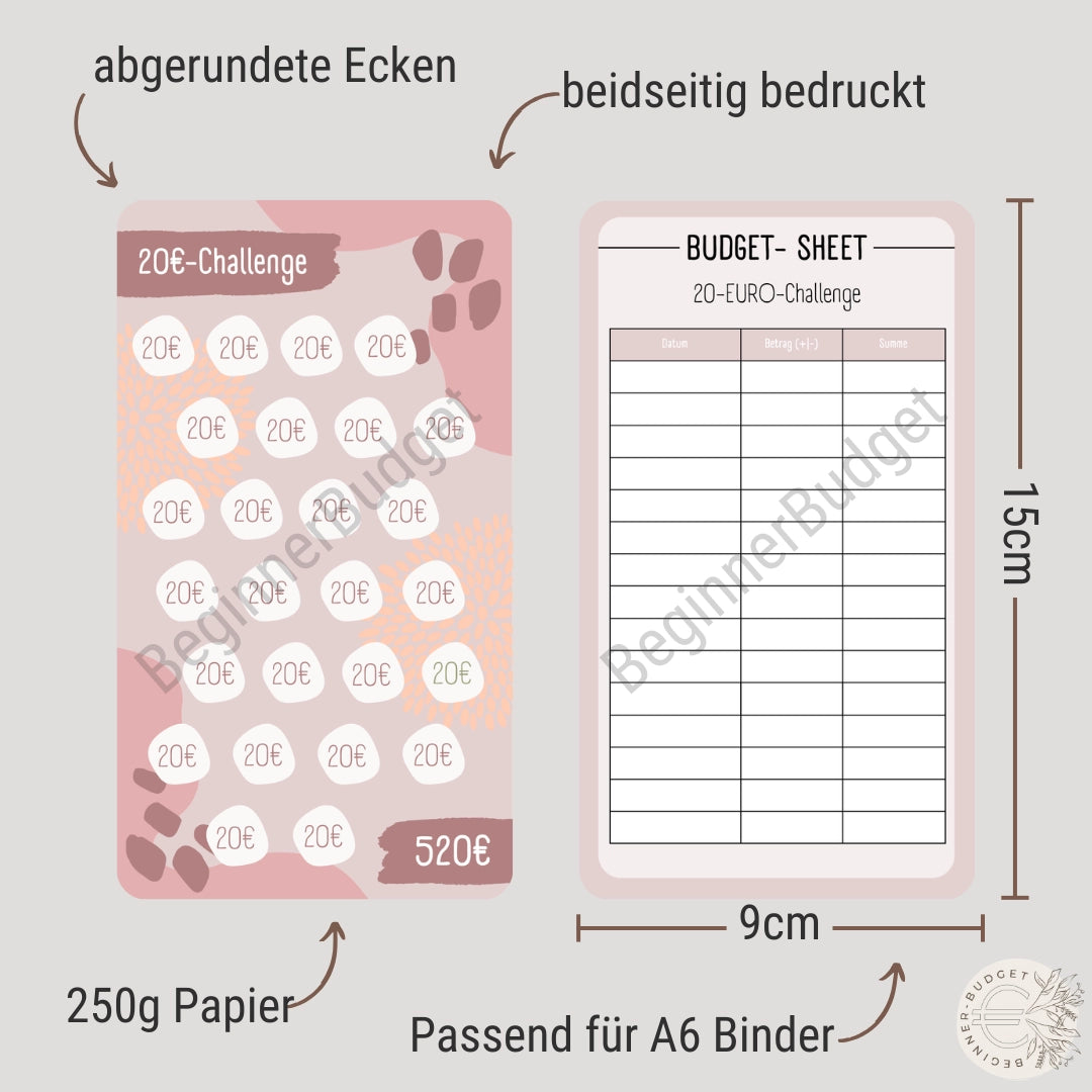 Die Challenge wird auf hochwertigen 250g Papier gedruckt und passend für die Zipperumschläge in deinem Budget Binder Personal zurechtgeschnitten (ca. 9x15cm).