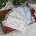 Die Platzhalter repräsentieren also die Summe, die eigentlich in deinem Umschlag wäre, du aber zur Sicherheit zur Bank gebracht hast. Entnehme dazu einfach die Summe, die du zur Bank bringen möchtest und tausche sie gegen den entsprechenden Platzhalter aus! 🔁💵