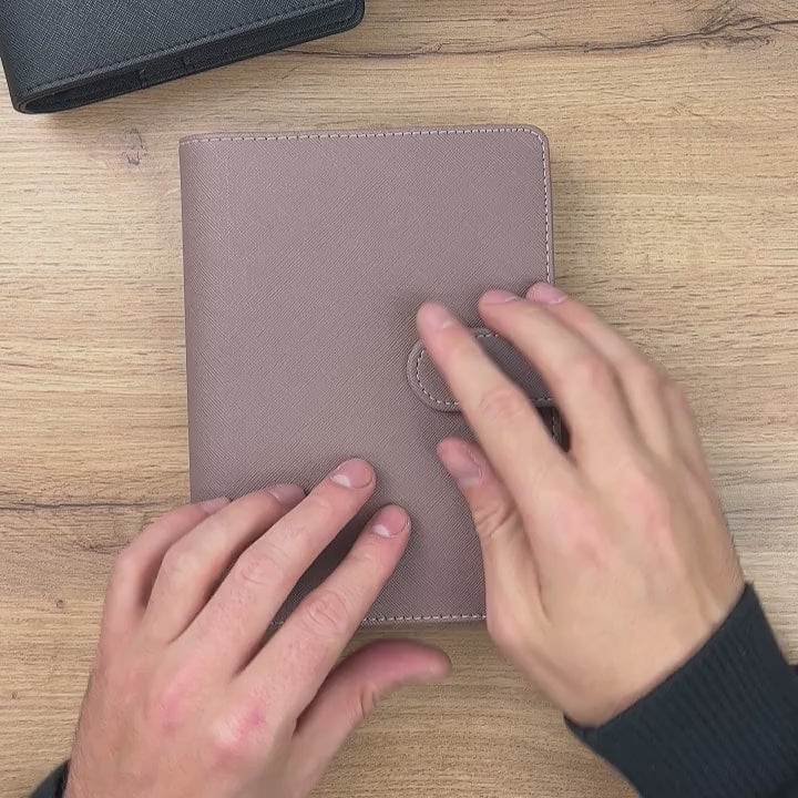 Entdecke unsere stilvollen Budget Binder, hergestellt aus hochwertigem, veganem Kunstleder. Wähle zwischen der eleganten Glattleder-Optik und der weichen Wildleder-Optik, um deine Finanzplanung nicht nur praktisch, sondern auch ästhetisch ansprechend zu gestalten. Jeder Binder ist mit einem robusten Hardcover ausgestattet und bietet dank seiner kompakten Größe Personal Größe (ähnlich A6), hervorragende Tragbarkeit und Benutzerfreundlichkeit. Unsere Produkte sind in verschiedenen ansprechenden Farben erhältlich, darunter Rosa, Blau, Grau, Braun, Schwarz und Grün. Ideal für alle, die Wert auf nachhaltige Büroartikel legen und eine stilvolle Finanzorganisation suchen.