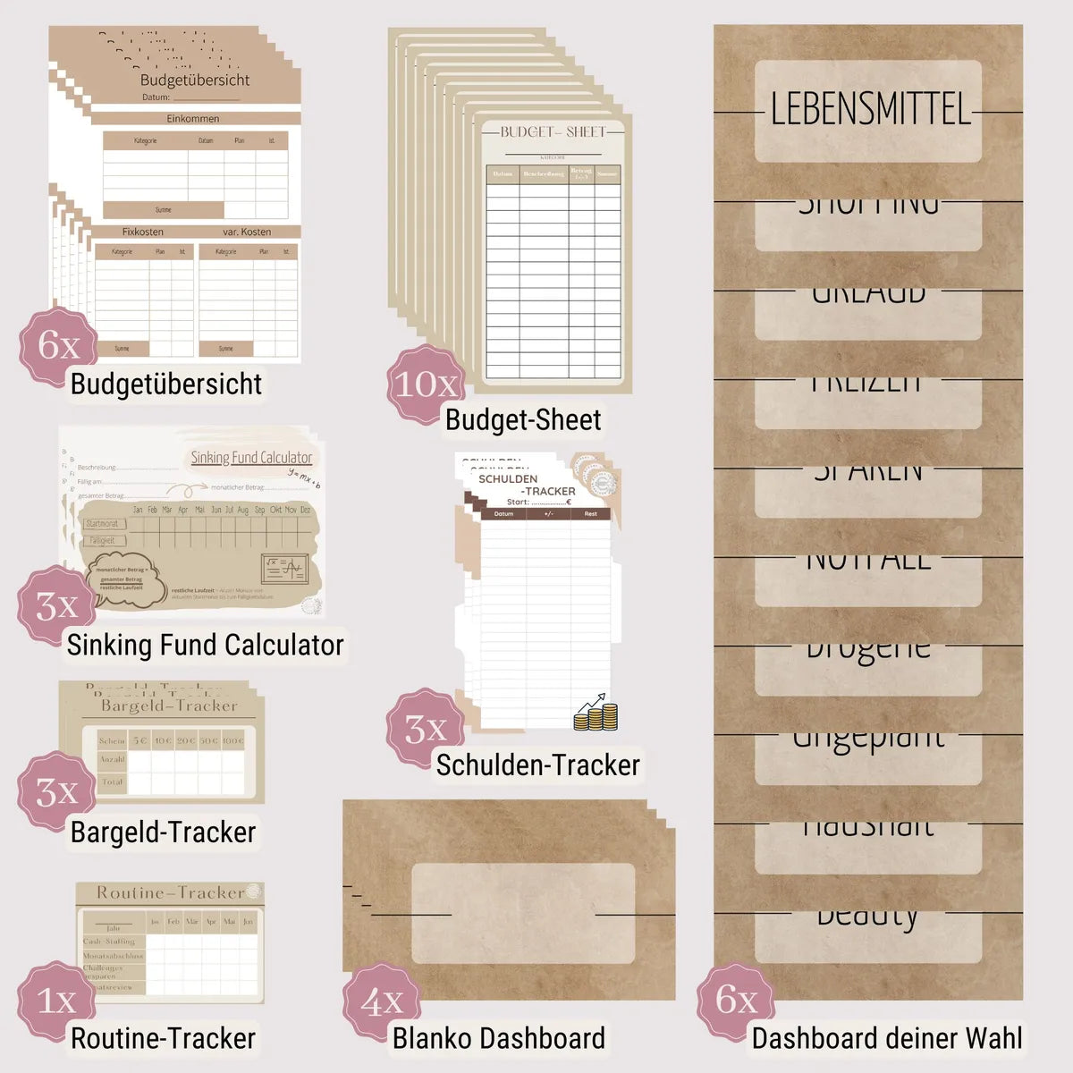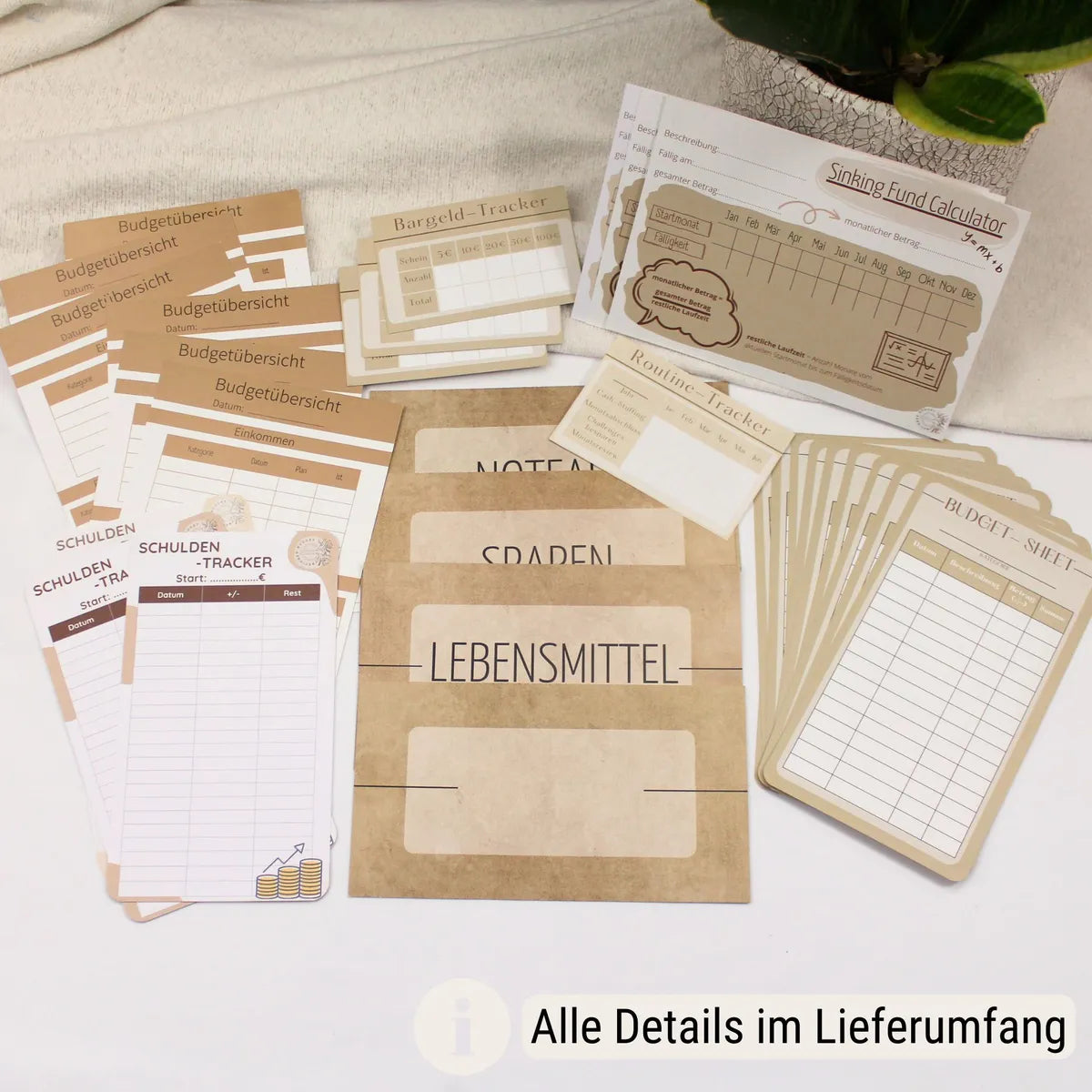 Mit diesem Set hast du alles, was du brauchst, um dein Budget strukturiert und übersichtlich zu führen – ideal für den Start in ein besseres Finanzmanagement!