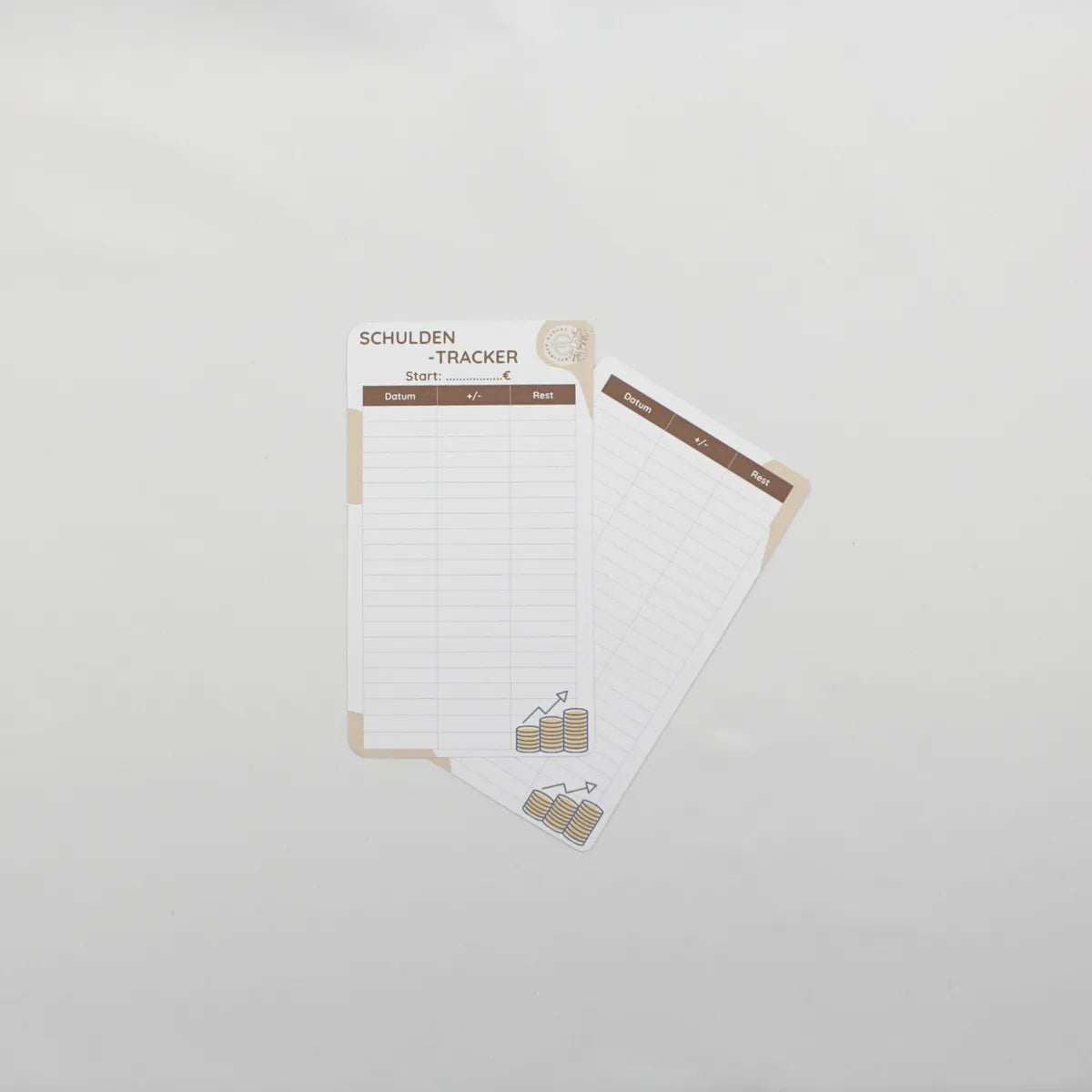 - 3x Schulden Tracker (250g Papier, 10,5 x 14,8 cm)