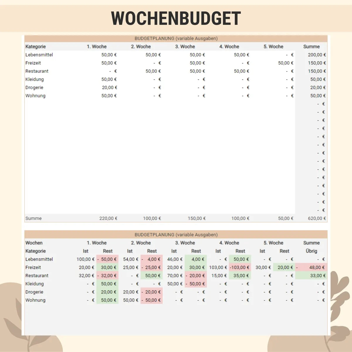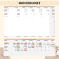 - Wochenbudget (Aufteilung der Budget in Wochen im jeweiligen Monat)