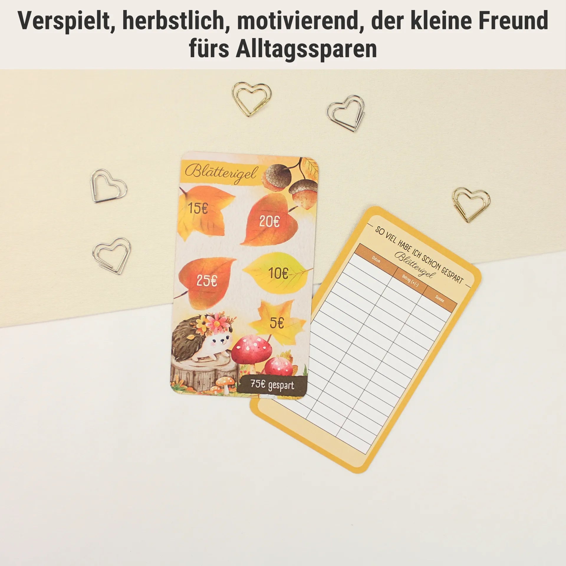 1 × „Blätterigel“ (75 € Sparziel, klassische Karte)
