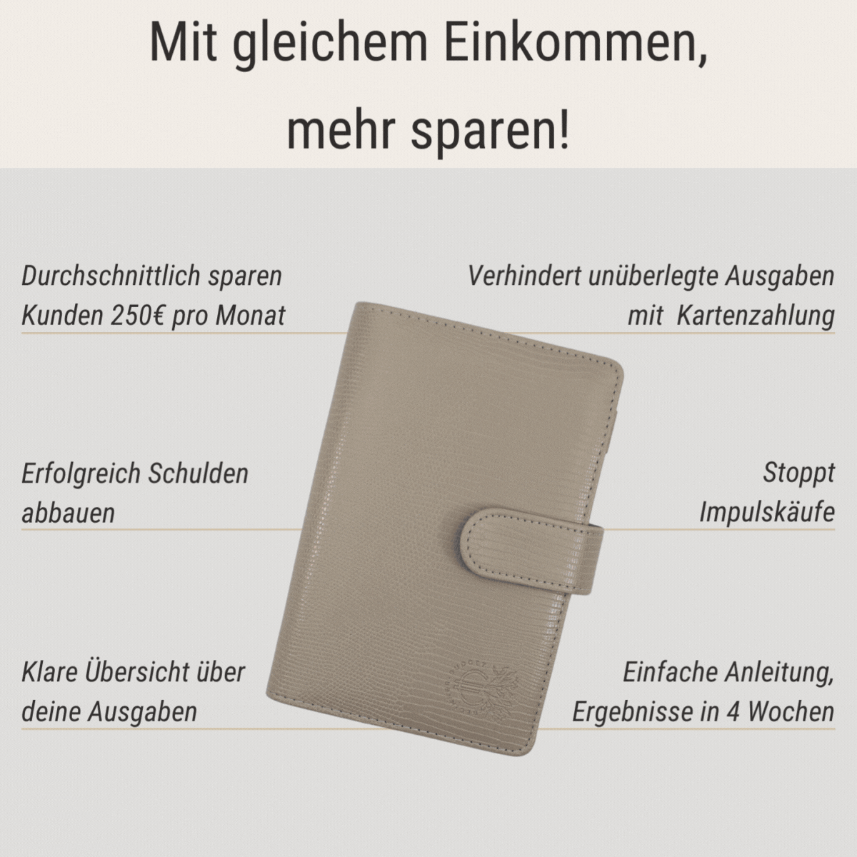 Der wahre Mehrwert jedoch zeigt sich in den Ergebnissen: Unsere Kunden sparen durchschnittlich 250 € im ersten Monat durch die Anwendung unserer Umschlagmethode, und die Einsparungen steigen in der Folgezeit oft noch weiter. Die Investition von 29,99 € ist also ein kleiner Preis für die große Kontrolle und Verbesserung deiner Finanzen – eine lohnenswerte Investition in deine Zukunft!